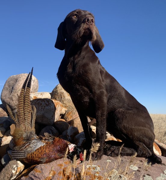 Both dogs have excellent PennHIP tests, very strong pedigrees, and are hunted at least 60 days a year on wild birds. This includes field and pond shoots for ducks and geese and upland adventures on multiple species in both western Canada and western USA. They are also accomplished shed hunters and excel at blood trailing for big game.