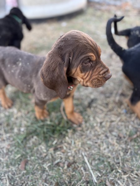10 week old litter ready for new homes. 2 liver and tan females, 2 black and tan females, 2 black and tan males. Vet checked, vaccinated, come with AKC registration papers upon purchase. $1000