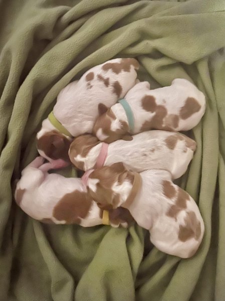 American Brittany puppies for sale born November 23 2022. these dogs come from peter gun, tequilas joker renegade Kansas kid Nolan's last bullet and many more. there all orange and white. will be ready to go in January. these dog make great hunters and pets. there's 5 puppies, 4 girls and 1 boy. If interested call Isabelle Owens at 803 608 66 37.