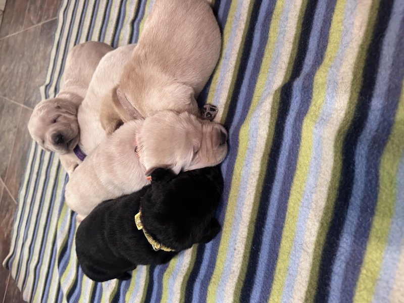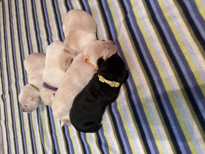5 Puppies Available: 4 Yellow Females and 1 Black Female,