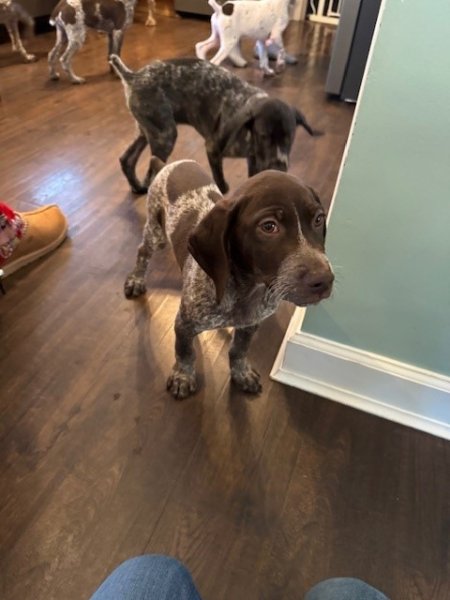 We have 3 males available. They have been raised in my home, not outside. They have first and second round of shots, dewormed and vet checked. They have their tails docked and dew claws removed. We have 1 liver males and 2 black males. AKC registration has been prepaid.