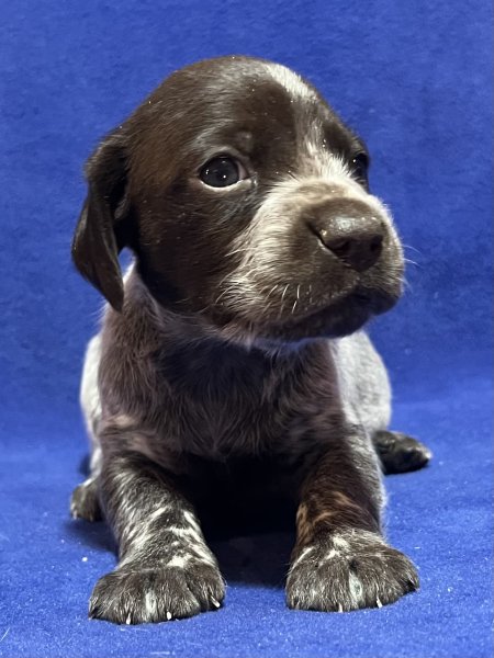 I have a litter of GSP puppies with Champion bloodlines that were born on January 2nd, 2026. They will be ready for their new homes at the end of February. My puppies are up to date on vaccinations when they are picked up. They can be AKC and NAVHDA Registered. Parents are OFA health tested. These shorthairs are outstanding companions with ideal dispositions.